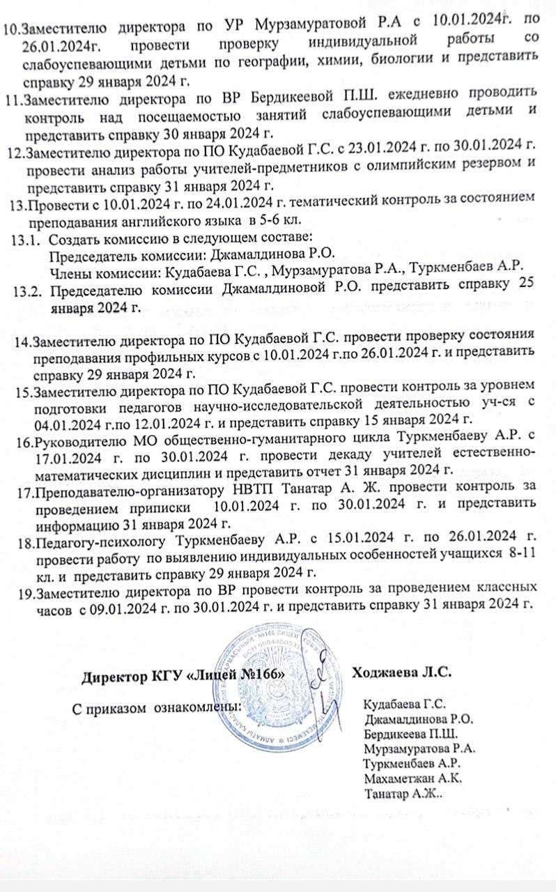 Желтоқсан айының мектепшілік бақылау циклограммасы