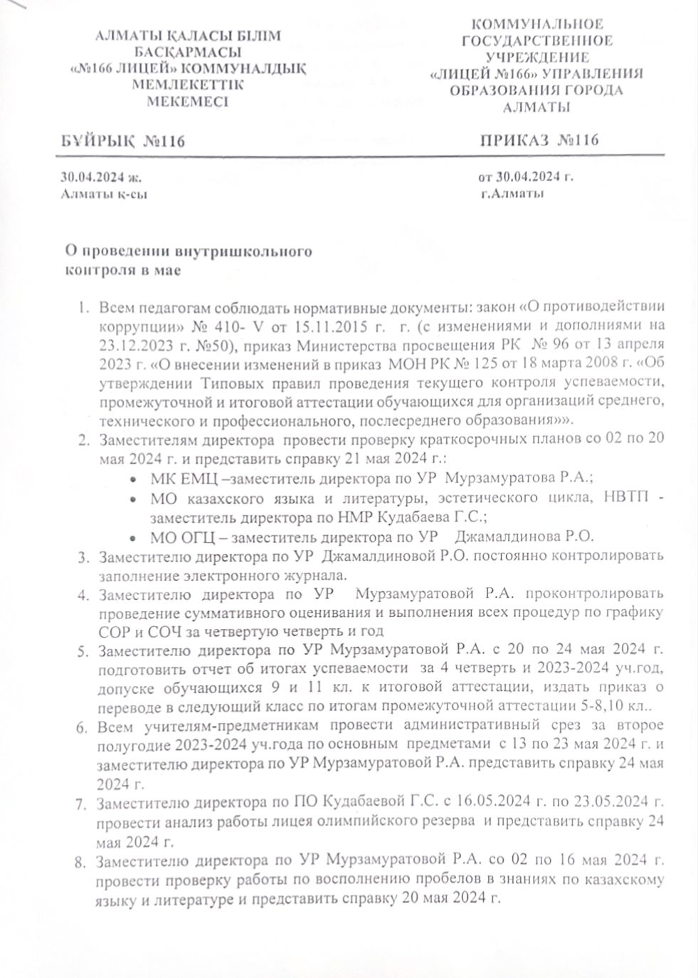 Мектепшілік бақылау тамыз айындағы қорытындысы