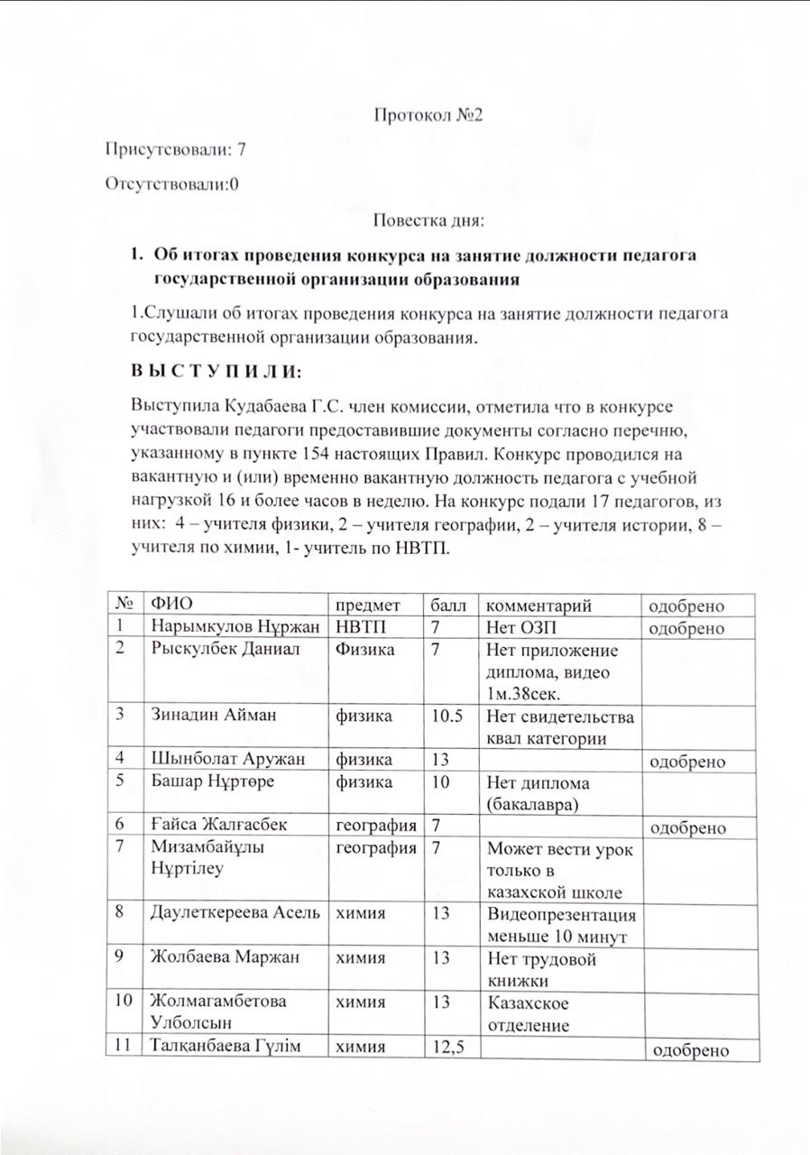 15 август 2024 0 1 2 3 4 5 Протокол. Об итогах проведения конкурса на занятие должности педагога государственной организации образование Осы беттің QR-коды:QR-код этой страницы: