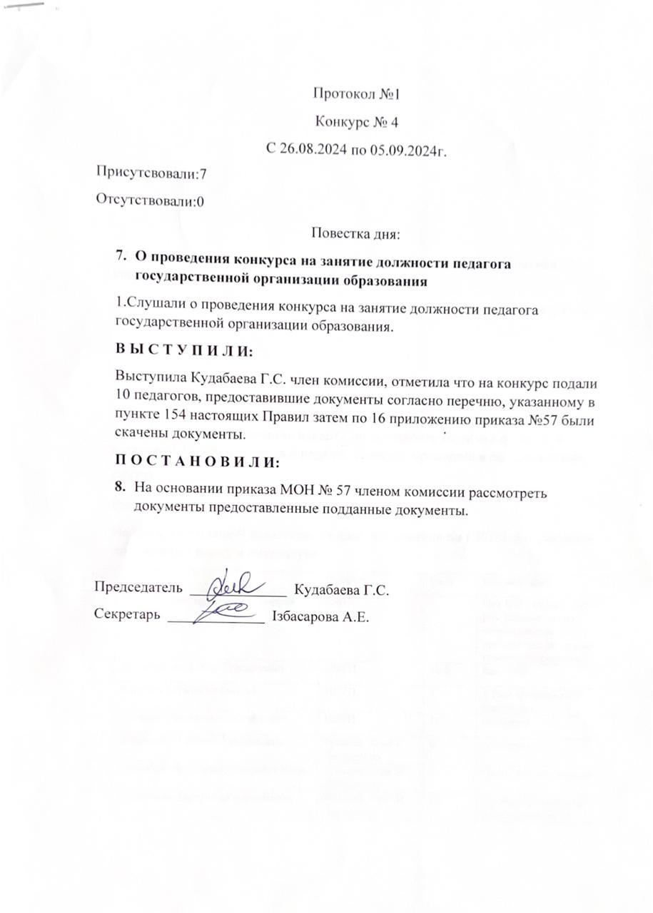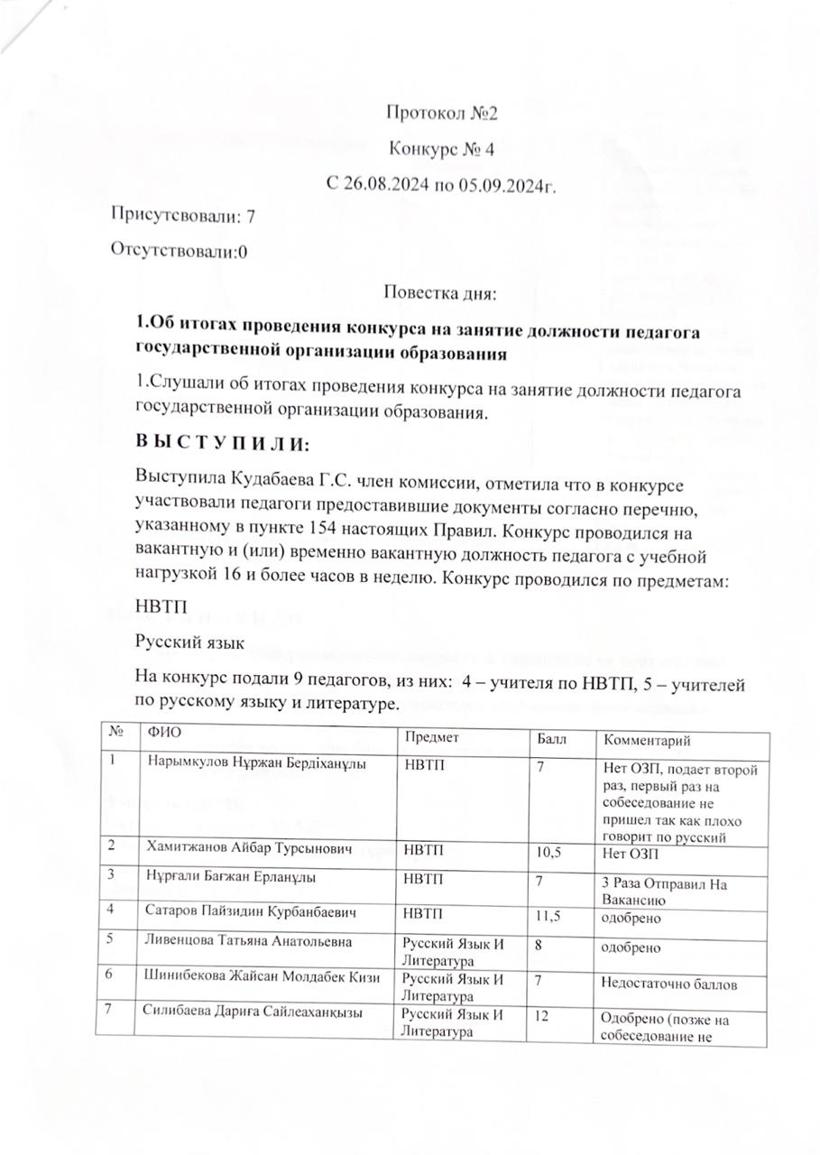05 сентябрь 2024 0 1 2 3 4 5 Протокол. Об итогах проведения конкурса на занятие должности педагога государственной организации образование Осы беттің QR-коды:QR-код этой страницы: