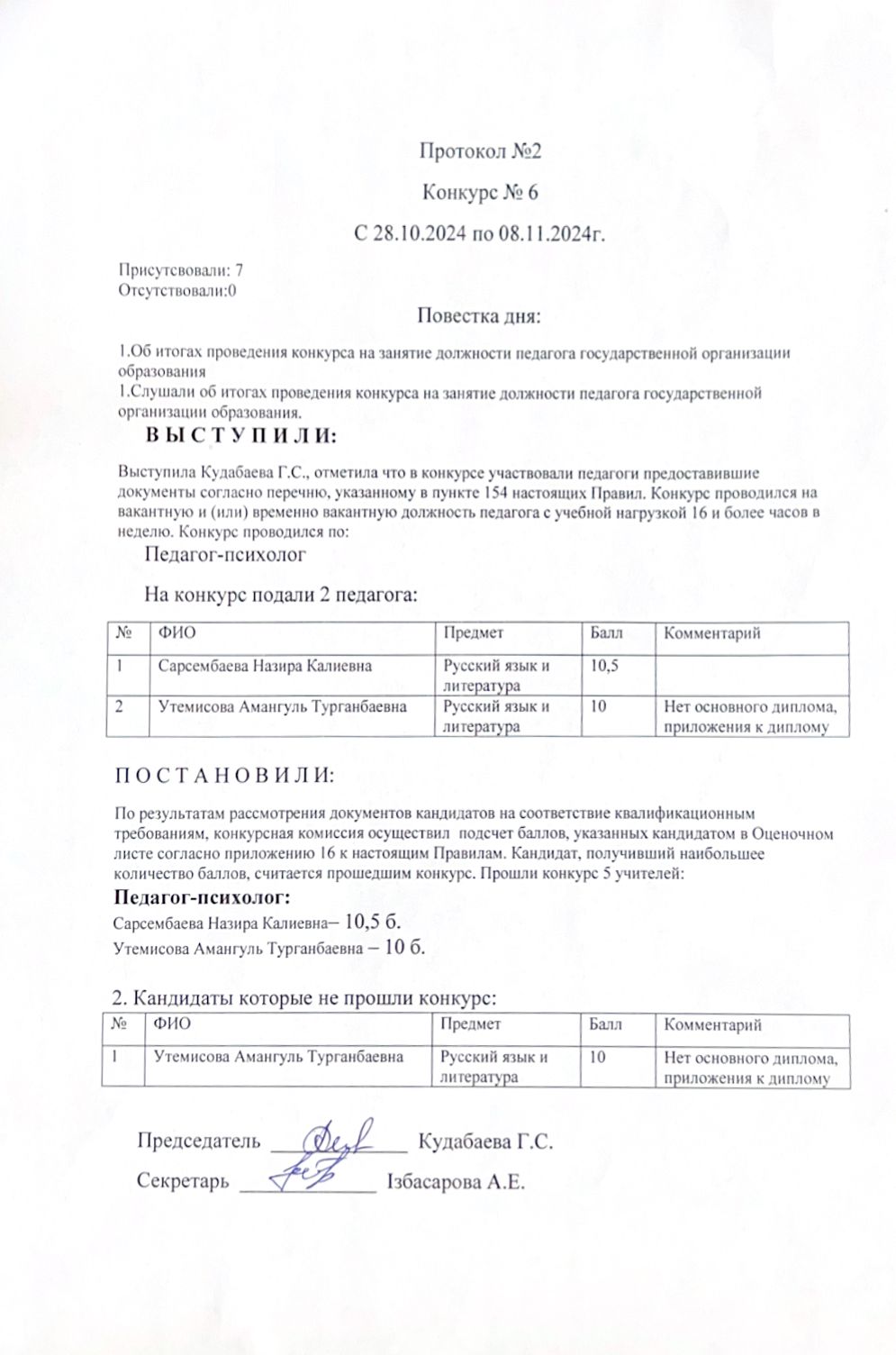 11 ноябрь 2024 0 1 2 3 4 5 Протокол о проведения конкурса на занятие должности педагога государственной организации образования Осы беттің QR-коды:QR-код этой страницы: