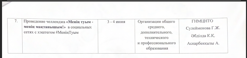 03 июнь 2025 0 1 2 3 4 5 4 маусым - ҚР-сының мемлекеттік рәміздер күніне арналған іс-шаралар жоспары 4 маусым - ҚР-сының мемлекеттік рәміздер күніне арналған іс-шаралар жоспарыПлан мероприятий, посвященных 4 июня - День государственных символов РК Осы беттің QR-коды:QR-код этой страницы: