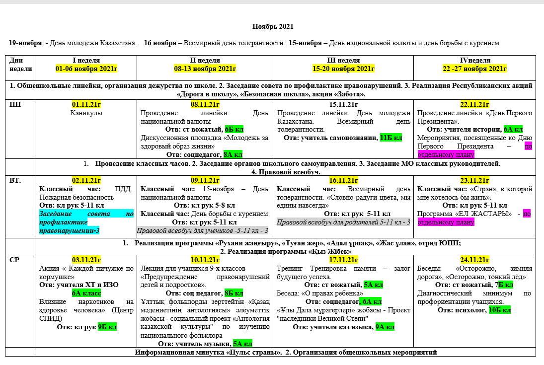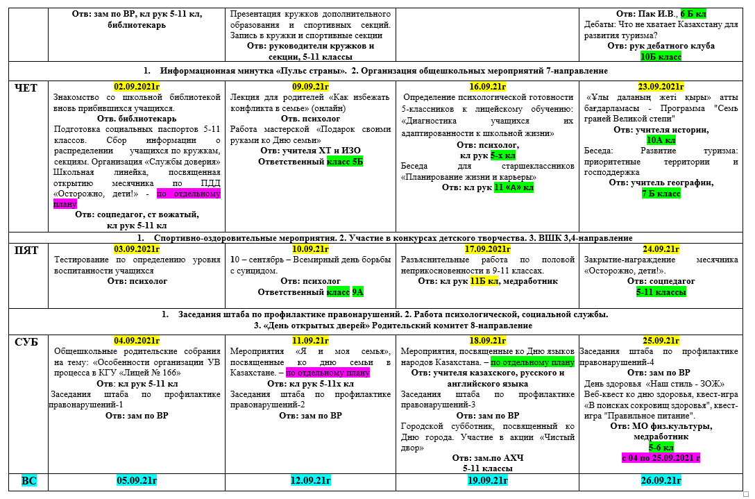 01 сентябрь 2021 0 1 2 3 4 5 План воспитательной работы КГУ "Лицей № 166" Алатауского района города Алматы на 1 полугодие 2021-2022 уч года План воспитательной работы КГУ "Лицей № 166" Алатауского района города Алматы на 1 полугодие 2021-2022 уч года Осы беттің QR-коды:QR-код этой страницы: