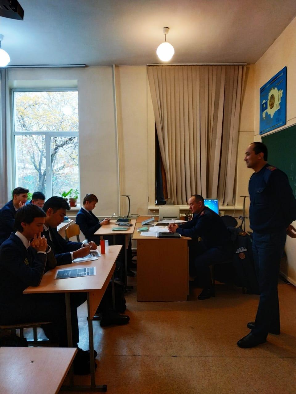 Инженерно-инспекторским составом Отдела по чрезвычайным ституациям Алатауского района ДЧС г. Алматы усиленно проводится работа по профориентации в школах Алатауского района. Сегодня в КГУ «Лицей № 166» ученикам выпускных классов был разъяснен формат поступления в КТИ МВД РК. Беседу проводили главные специалисты ЧС Алатауского района майор гражданской защиты Кожамбердиев Б.И. и майор гражданской защиты Тастанов А.С. Обучение, проживание, обмундирование и питание в стенах КТИ МВД РК проходит полностью за счет государственных средств, что на сегодняшний день, при ценах обучения в гражданских ВУЗах имеет очень не маловажную роль. Большим приоритетом является и то, что после выпуска КТИ МВД РК выпускник 100% обеспечен работой в населённом пункте откуда он поступал, в сравнении с гражданскими выпускниками, которые очень долгое время не могут найти работу, не имея опыта. После проведения лекции, с изъявившими желанием поступления в КТИ МВД РК учениками проведены индивидуальные беседы с вручением памяток по поступлению.