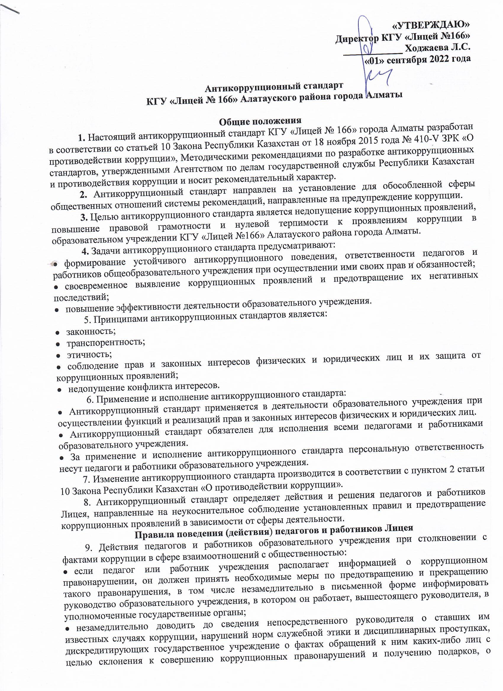 01 сентябрь 2022 0 1 2 3 4 5 Антикоррупционный стандарт КГУ "Лицей № 166" Алатауского района города Алматы Антикоррупционный стандарт КГУ "Лицей № 166" Алатауского района города Алматы Осы беттің QR-коды:QR-код этой страницы: