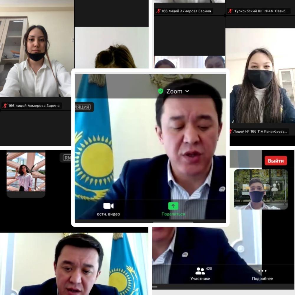 27 октября 2021 года ученики 10-11-х классов КГУ «Лицей № 166» участвовали в онлайн встрече со спикерами офиса "Адалдық алаңы", общественниками, медийными лицами по разъяснению принципов нулевой терпимости к коррупции «Роль молодежи в борьбе с коррупцией».