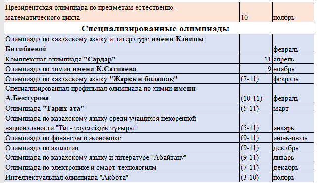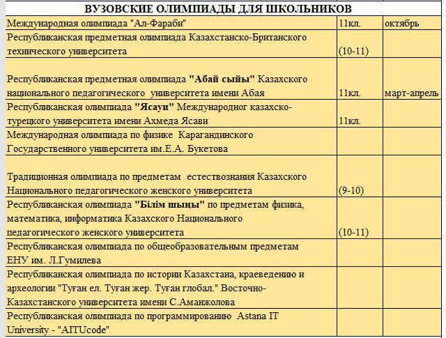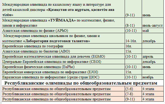Перечень республиканских и международных олимпиад и конкурсов, научных проектов по общеобразовательным предметам-2021-2022 уч год