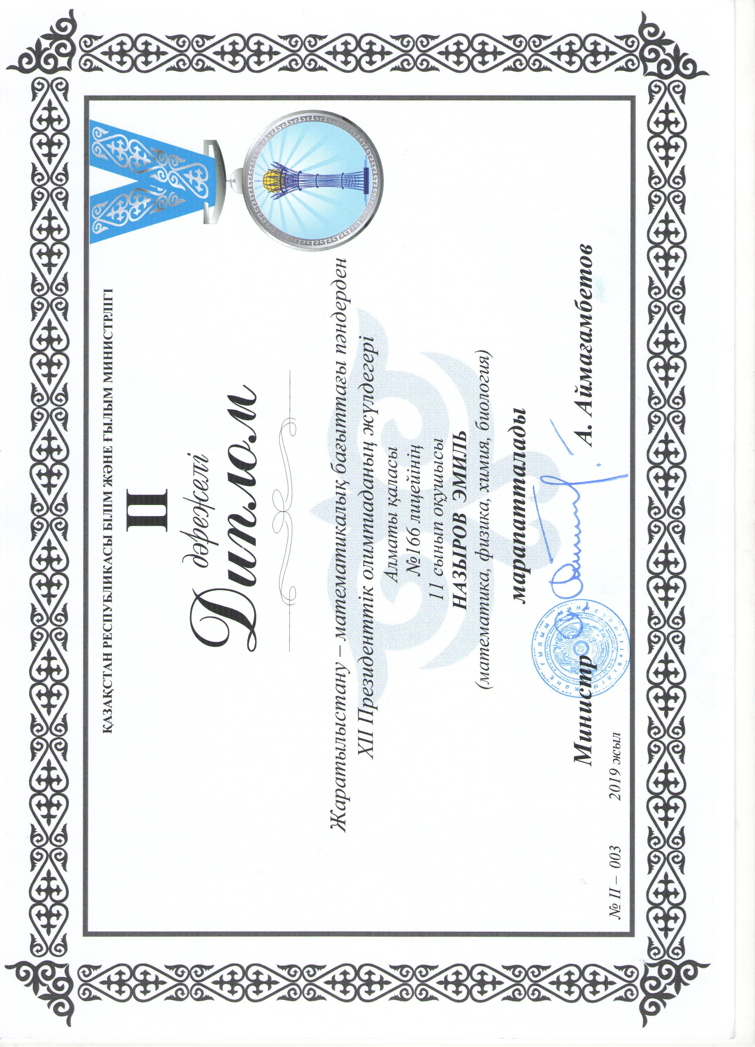 Наши ученики 11 класса Трофимов Станислав, Назыров Эмиль и Угай Артур на этих соревнованиях представляли физико-математический лицей №166 в составе олимпийской сборной города Алматы.
