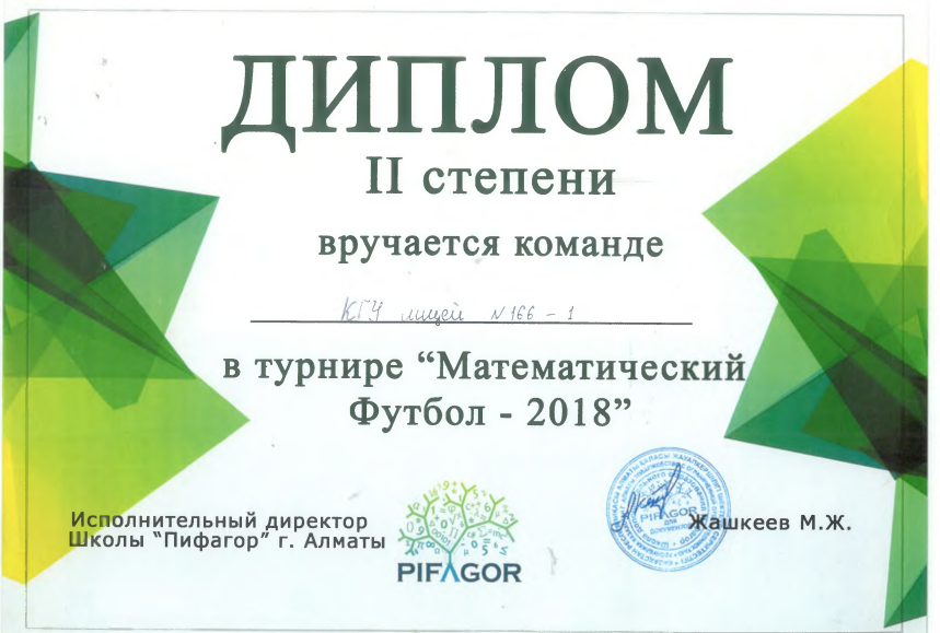 11. Турнир "Математический футбол-2018", диплом 2 степени