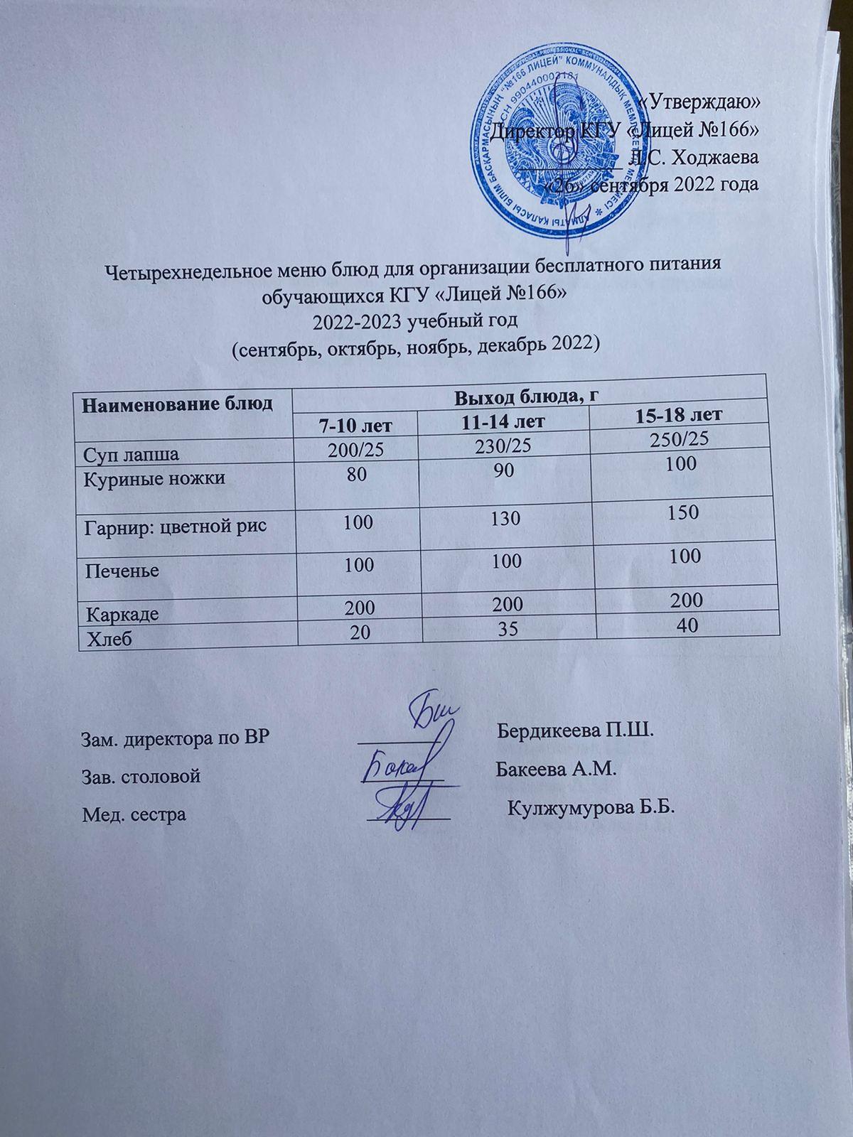 26 сентябрь 2022 0 1 2 3 4 5 Четырехнедельное меню блюд для организации бесплатного питания обучающихся КГУ "Лицей №166" 2022-2023 учебный год 26 сентября 2022 г Четырехнедельное меню блюд для организации бесплатного питания обучающихся КГУ "Лицей №166" 2022-2023 учебный год 26 сентября 2022 г Осы беттің QR-коды:QR-код этой страницы: