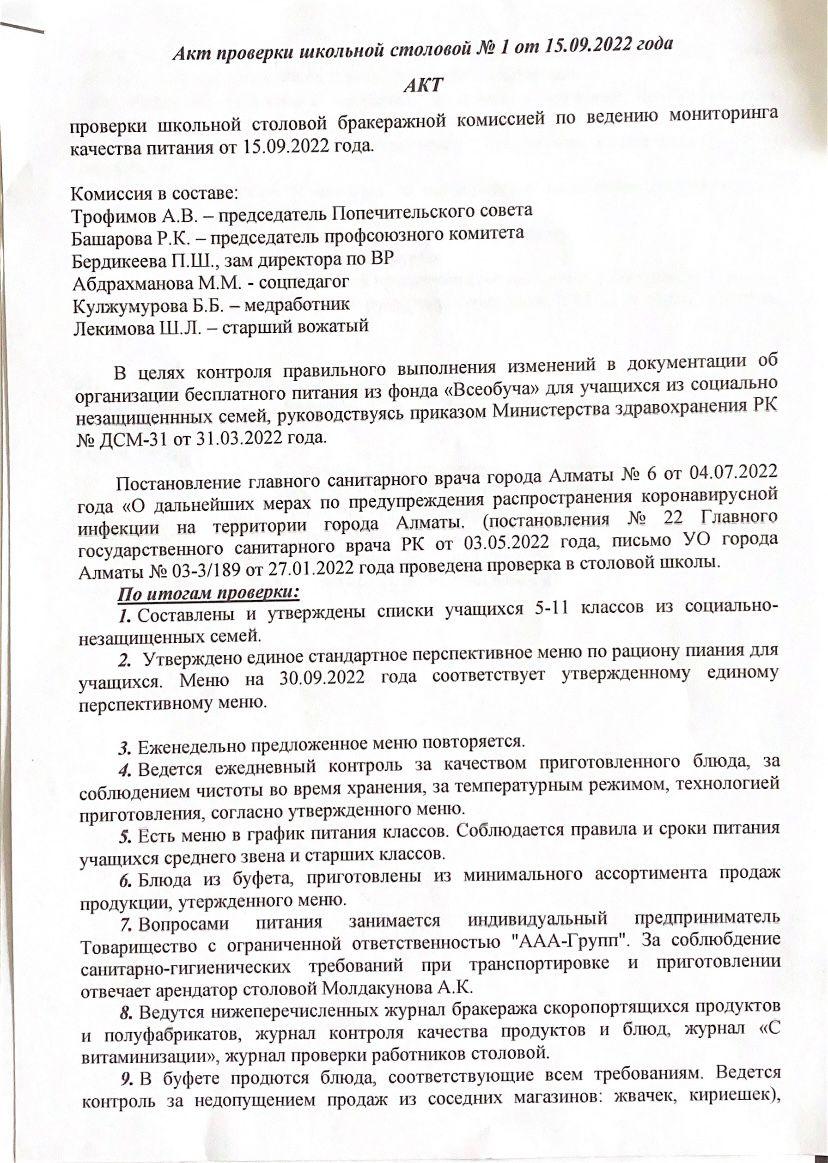 15 сентябрь 2022 0 1 2 3 4 5 Акт проверки школьной столовой № 1 от 15.09.2022 года Акт проверки школьной столовой № 1 от 15.09.2022 года Осы беттің QR-коды:QR-код этой страницы: