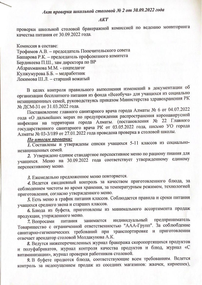 30 сентябрь 2022 0 1 2 3 4 5 Акт проверки школьной столовой № 2 от 30.09.2022 года Акт проверки школьной столовой № 2 от 30.09.2022 года Осы беттің QR-коды:QR-код этой страницы: