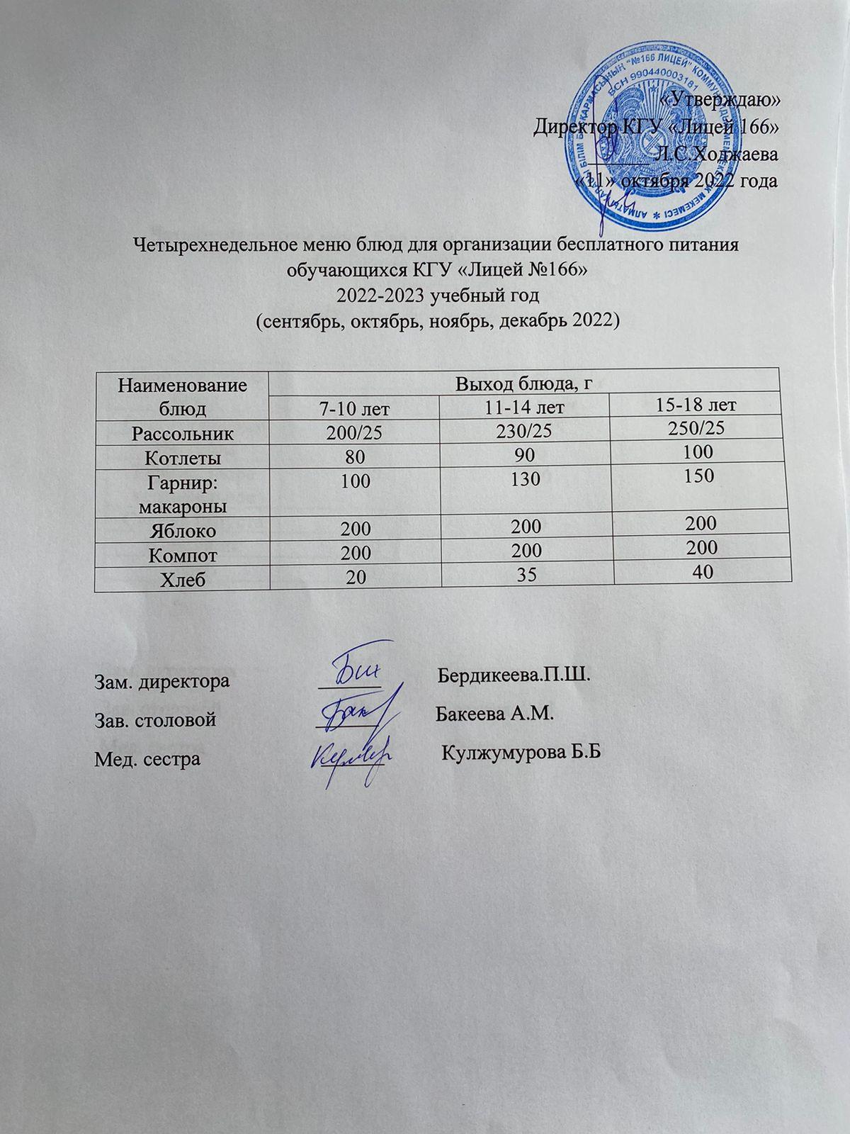 11 октябрь 2022 0 1 2 3 4 5 Четырехнедельное меню блюд для организации бесплатного питания обучающихся КГУ "Лицей №166" 2022-2023 учебный год 11 октября 2022 г Четырехнедельное меню блюд для организации бесплатного питания обучающихся КГУ "Лицей №166" 2022-2023 учебный год 11 октября 2022 г Осы беттің QR-коды:QR-код этой страницы: