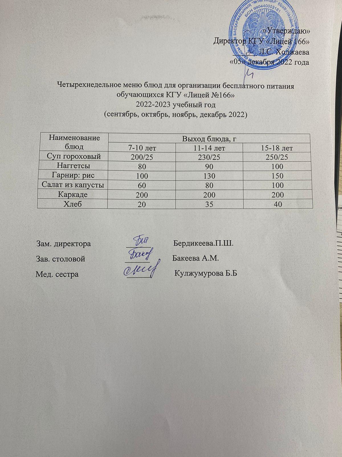 05 декабрь 2022 0 1 2 3 4 5 Четырехнедельное меню блюд для организации бесплатного питания обучающихся КГУ "Лицей №166" 2022-2023 учебный год Осы беттің QR-коды:QR-код этой страницы: