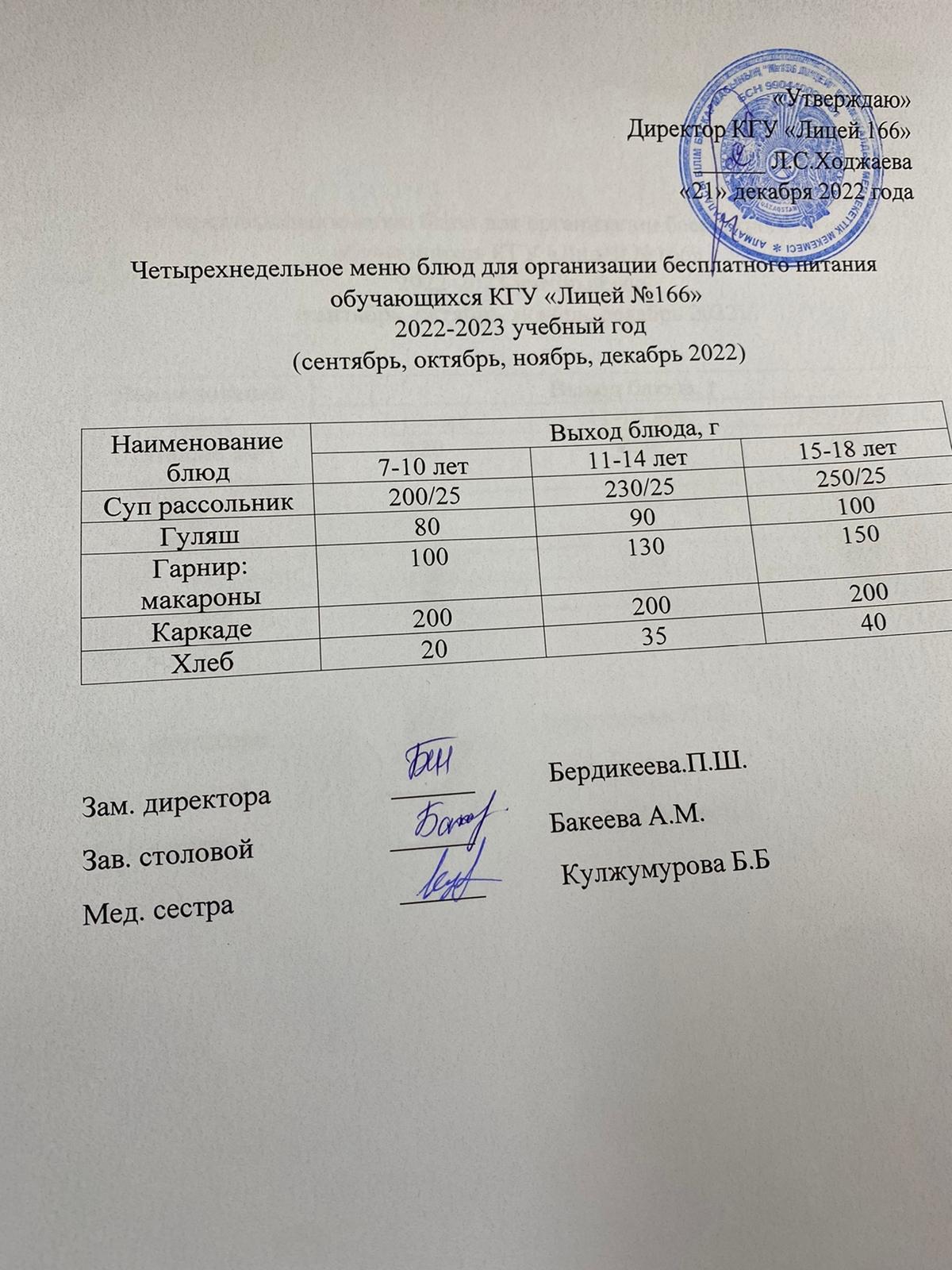 21 декабрь 2022 0 1 2 3 4 5 Четырехнедельное меню блюд для организации бесплатного питания обучающихся КГУ "Лицей №166" 2022-2023 учебный год Осы беттің QR-коды:QR-код этой страницы: