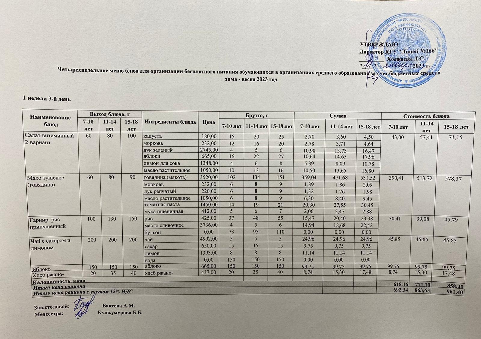 11 январь 2023 0 1 2 3 4 5 Четырехнедельное меню блюд для организации бесплатного питания обучающихся КГУ "Лицей №166" 2022-2023 учебный год Осы беттің QR-коды:QR-код этой страницы: