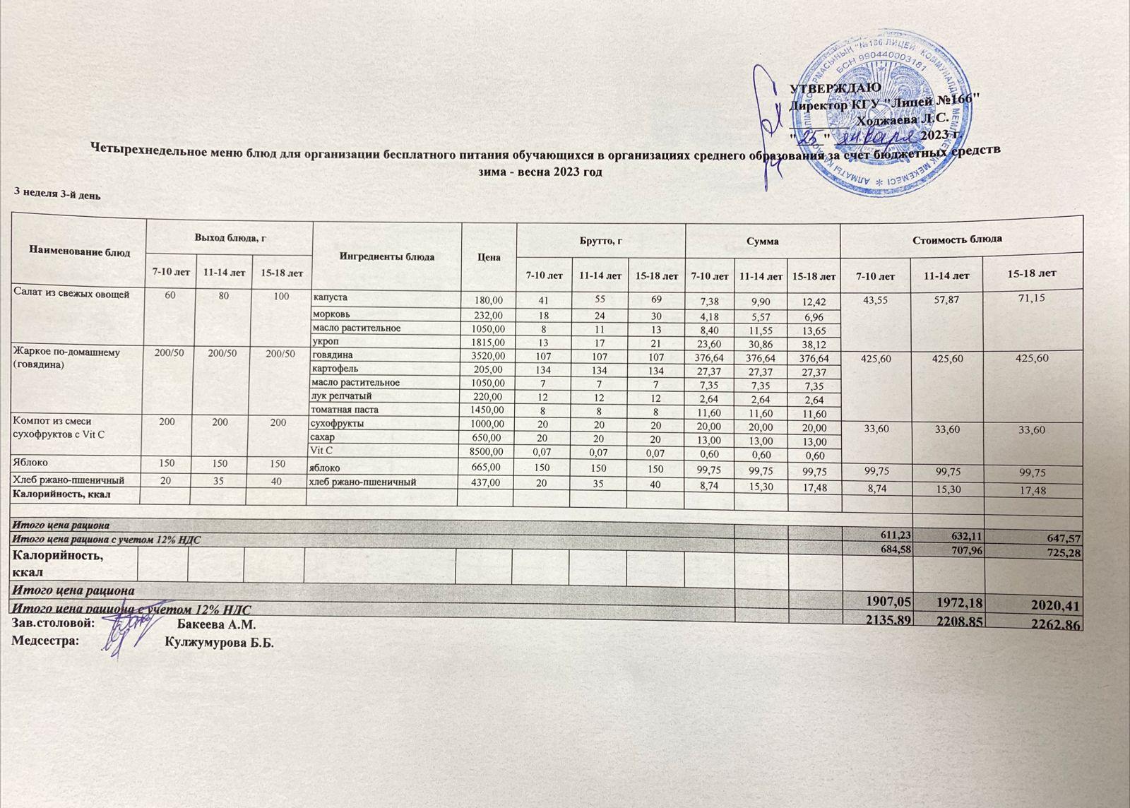 25 январь 2023 0 1 2 3 4 5 Четырехнедельное меню блюд для организации бесплатного питания обучающихся КГУ "Лицей №166" 2022-2023 учебный год Осы беттің QR-коды:QR-код этой страницы: