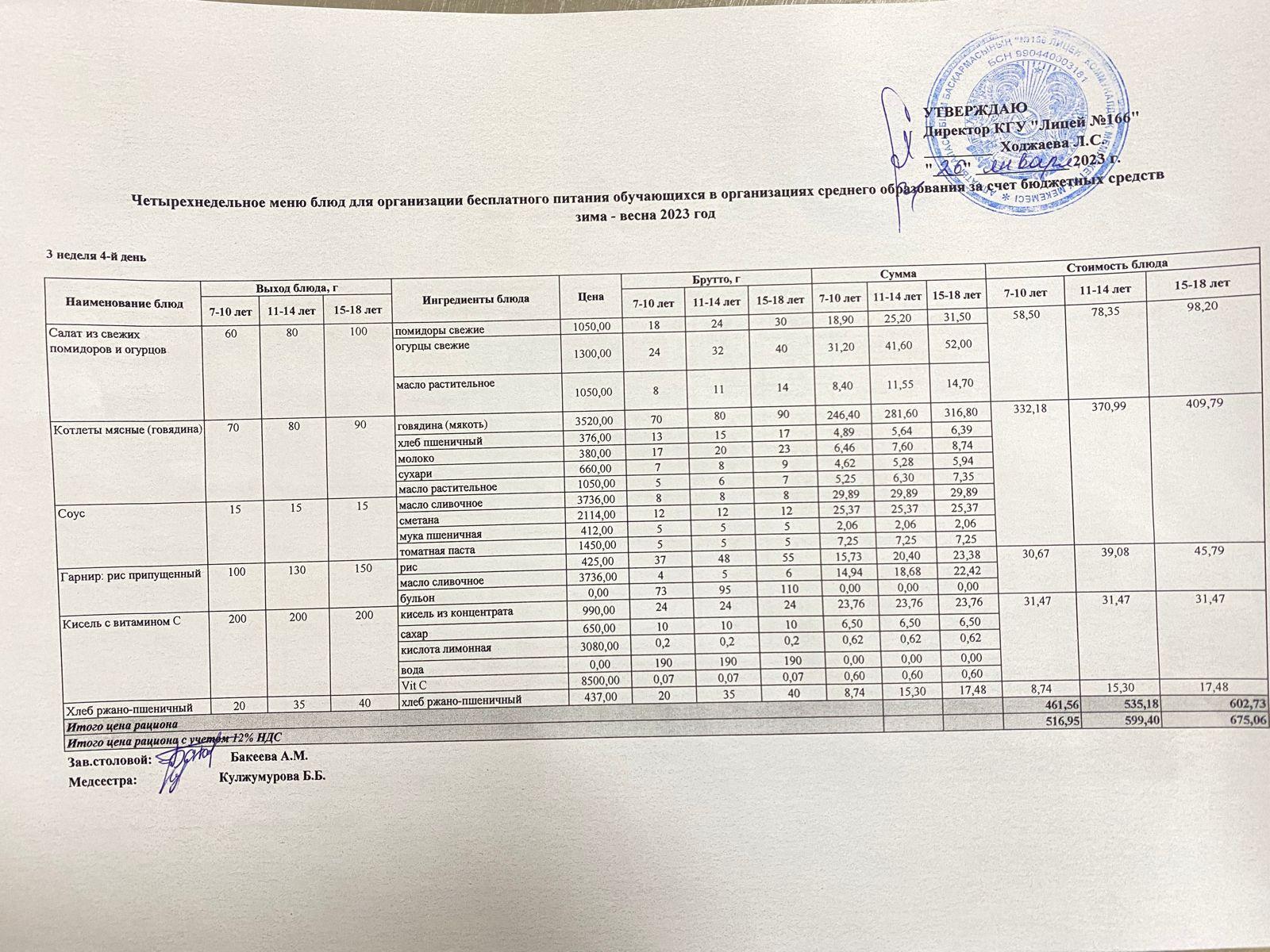 26 январь 2023 0 1 2 3 4 5 Четырехнедельное меню блюд для организации бесплатного питания обучающихся КГУ "Лицей №166" 2022-2023 учебный год Осы беттің QR-коды:QR-код этой страницы: