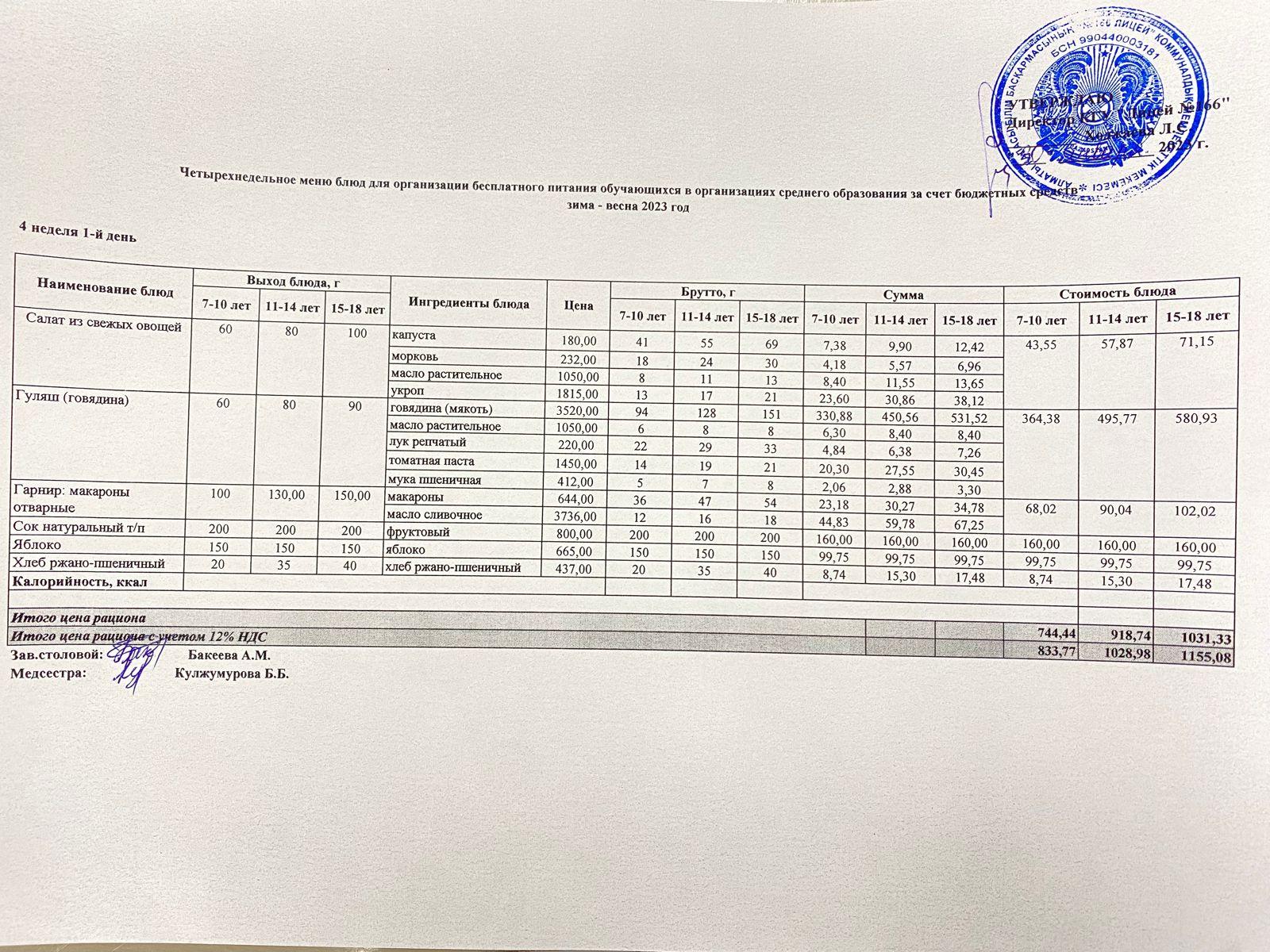 30 январь 2023 0 1 2 3 4 5 Четырехнедельное меню блюд для организации бесплатного питания обучающихся КГУ "Лицей №166" 2022-2023 учебный год Осы беттің QR-коды:QR-код этой страницы: