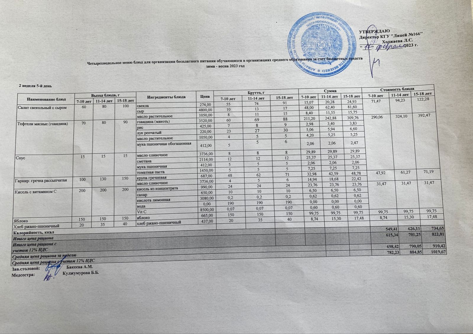 17 февраль 2023 0 1 2 3 4 5 Четырехнедельное меню блюд для организации бесплатного питания Осы беттің QR-коды:QR-код этой страницы: