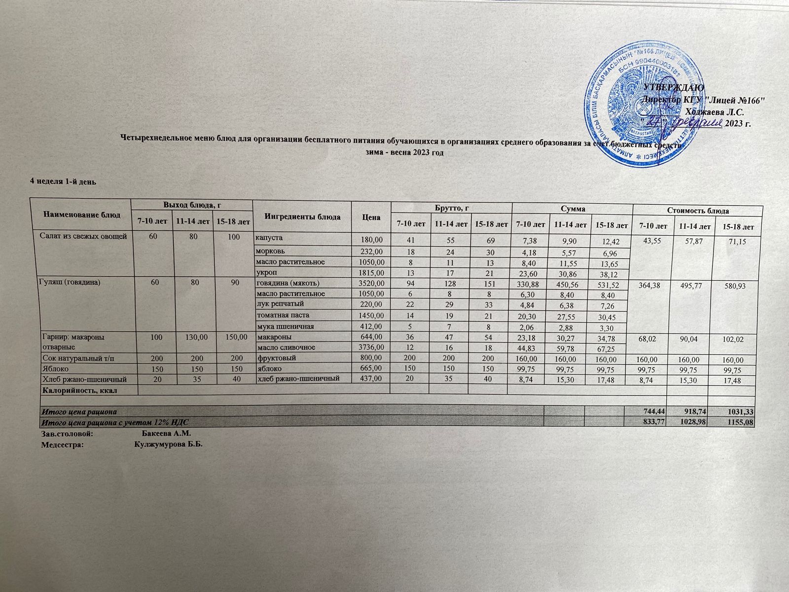 27 февраль 2023 0 1 2 3 4 5 Четырехнедельное меню блюд для организации бесплатного питания Осы беттің QR-коды:QR-код этой страницы:
