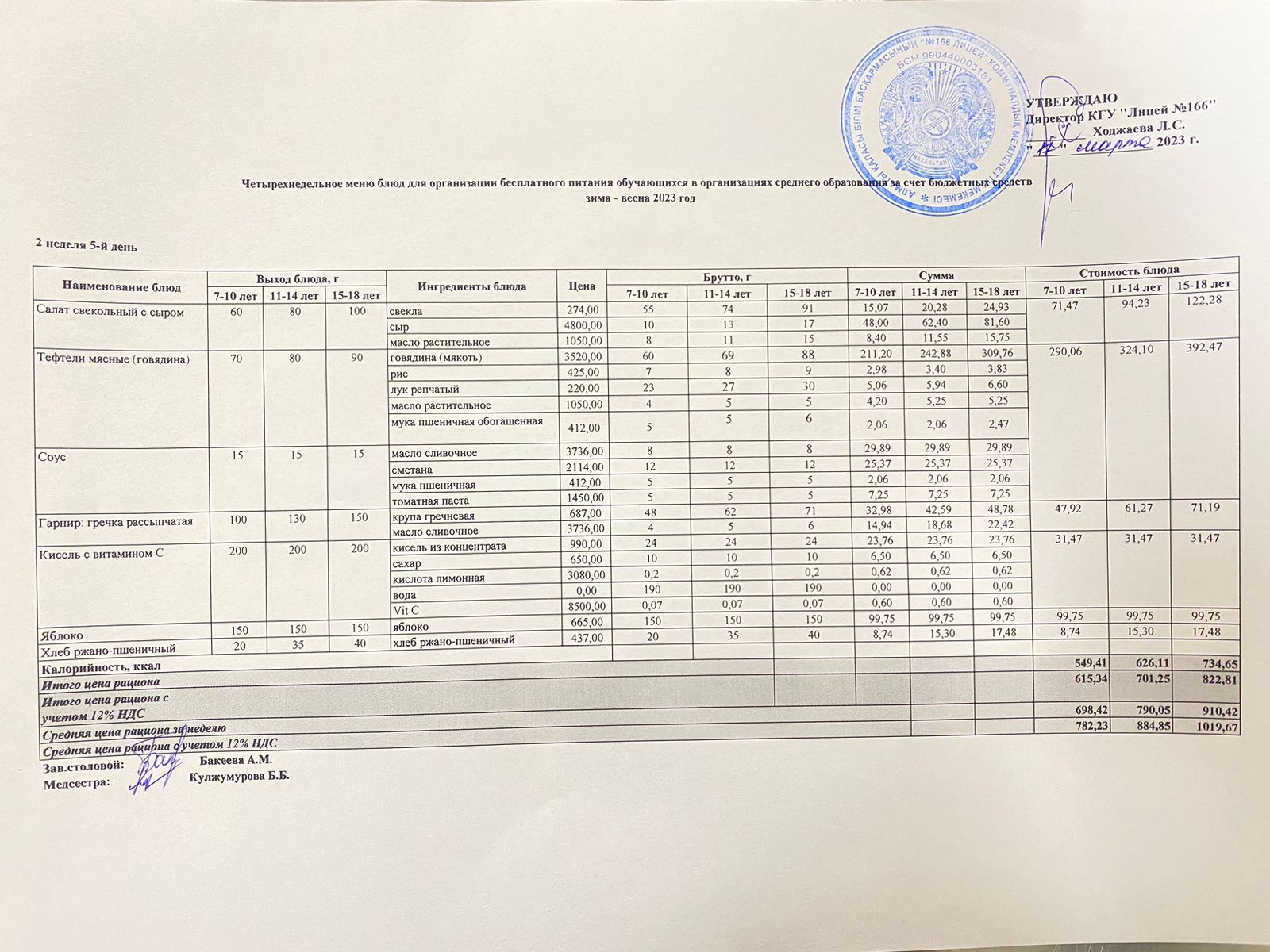 17 март 2023 0 1 2 3 4 5 Четырехнедельное меню блюд для организации бесплатного питания Осы беттің QR-коды:QR-код этой страницы: