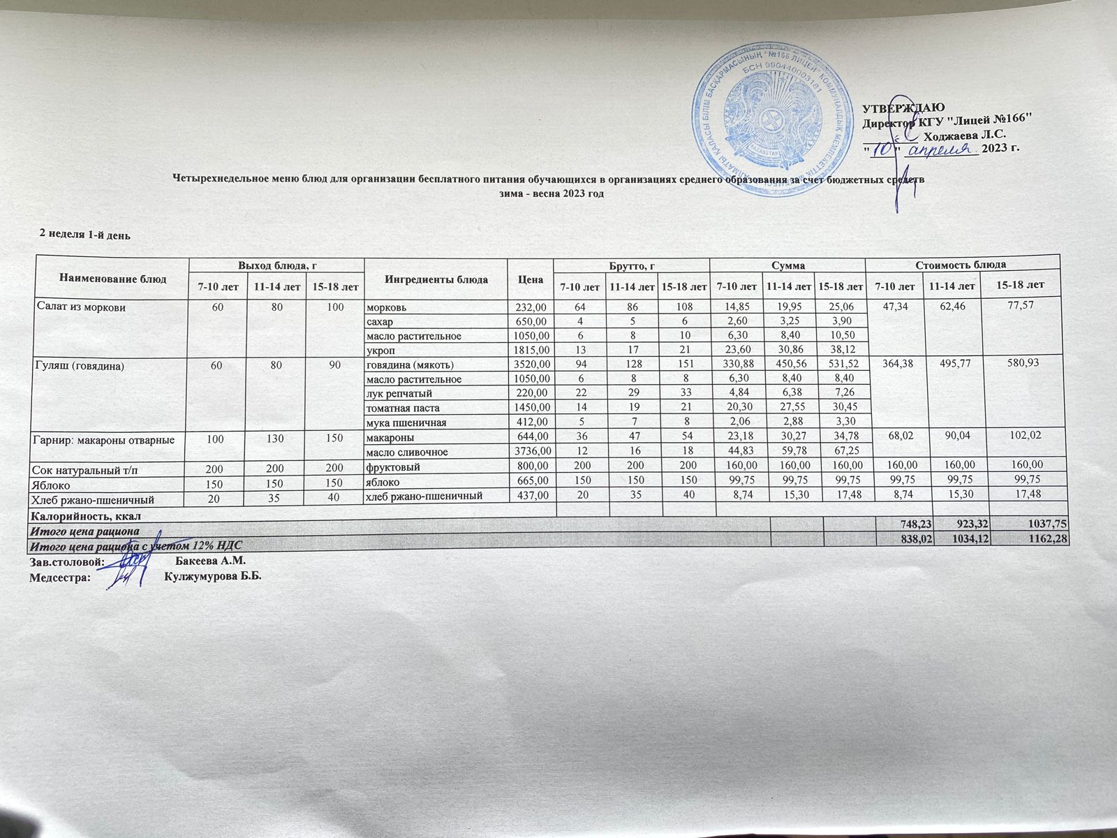 10 апрель 2023 0 1 2 3 4 5 Четырехнедельное меню блюд для организации бесплатного питания Осы беттің QR-коды:QR-код этой страницы: