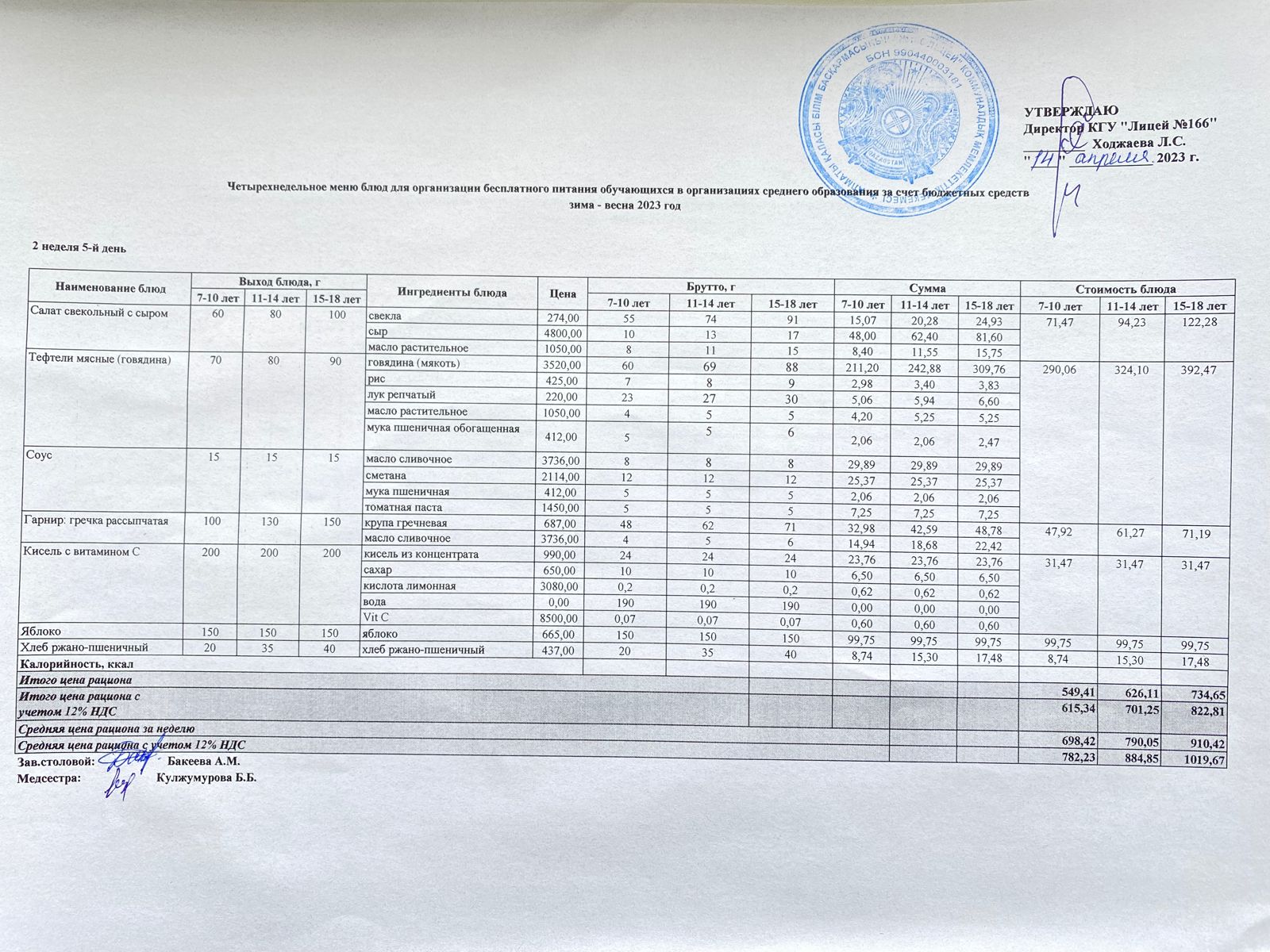 14 апрель 2023 0 1 2 3 4 5 Четырехнедельное меню блюд для организации бесплатного питания Осы беттің QR-коды:QR-код этой страницы: