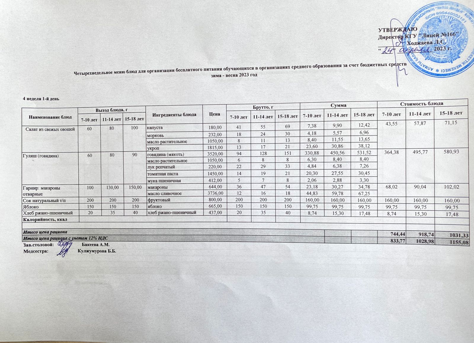 24 апрель 2023 0 1 2 3 4 5 Четырехнедельное меню блюд для организации бесплатного питания Осы беттің QR-коды:QR-код этой страницы: