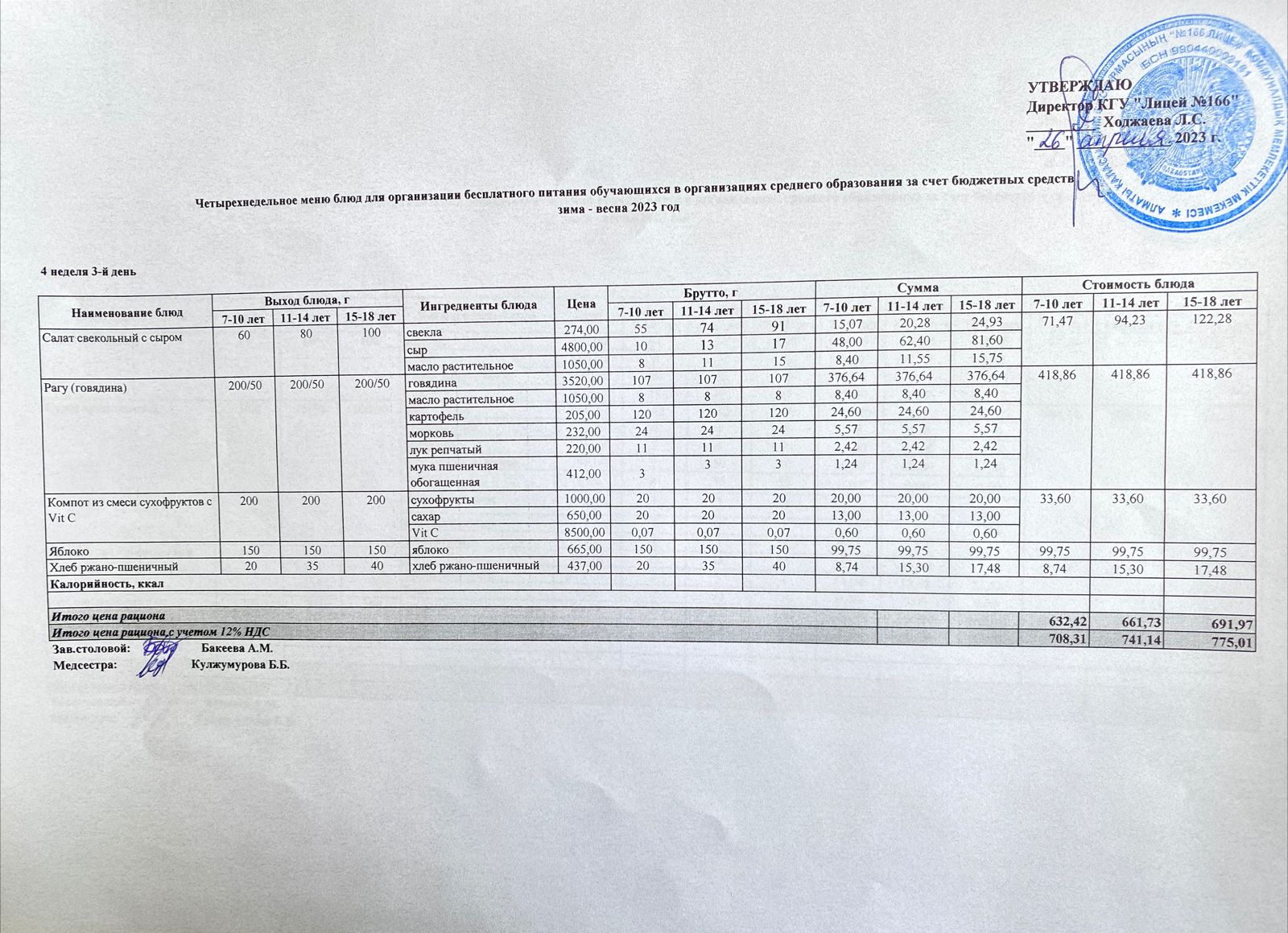 26 апрель 2023 0 1 2 3 4 5 Четырехнедельное меню блюд для организации бесплатного питания Осы беттің QR-коды:QR-код этой страницы: