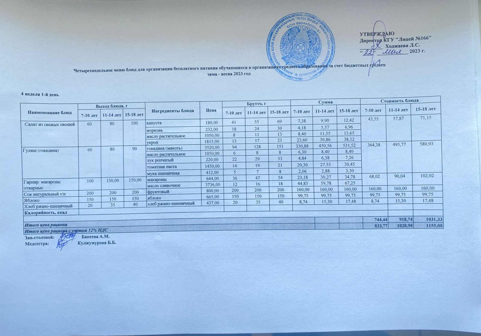 22 май 2023 0 1 2 3 4 5 Четырехнедельное меню блюд для организации бесплатного питания Осы беттің QR-коды:QR-код этой страницы:
