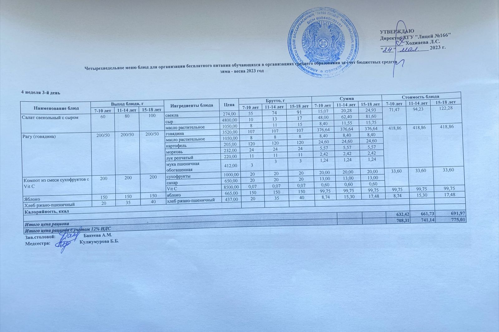 24 май 2023 0 1 2 3 4 5 Четырехнедельное меню блюд для организации бесплатного питания Осы беттің QR-коды:QR-код этой страницы:
