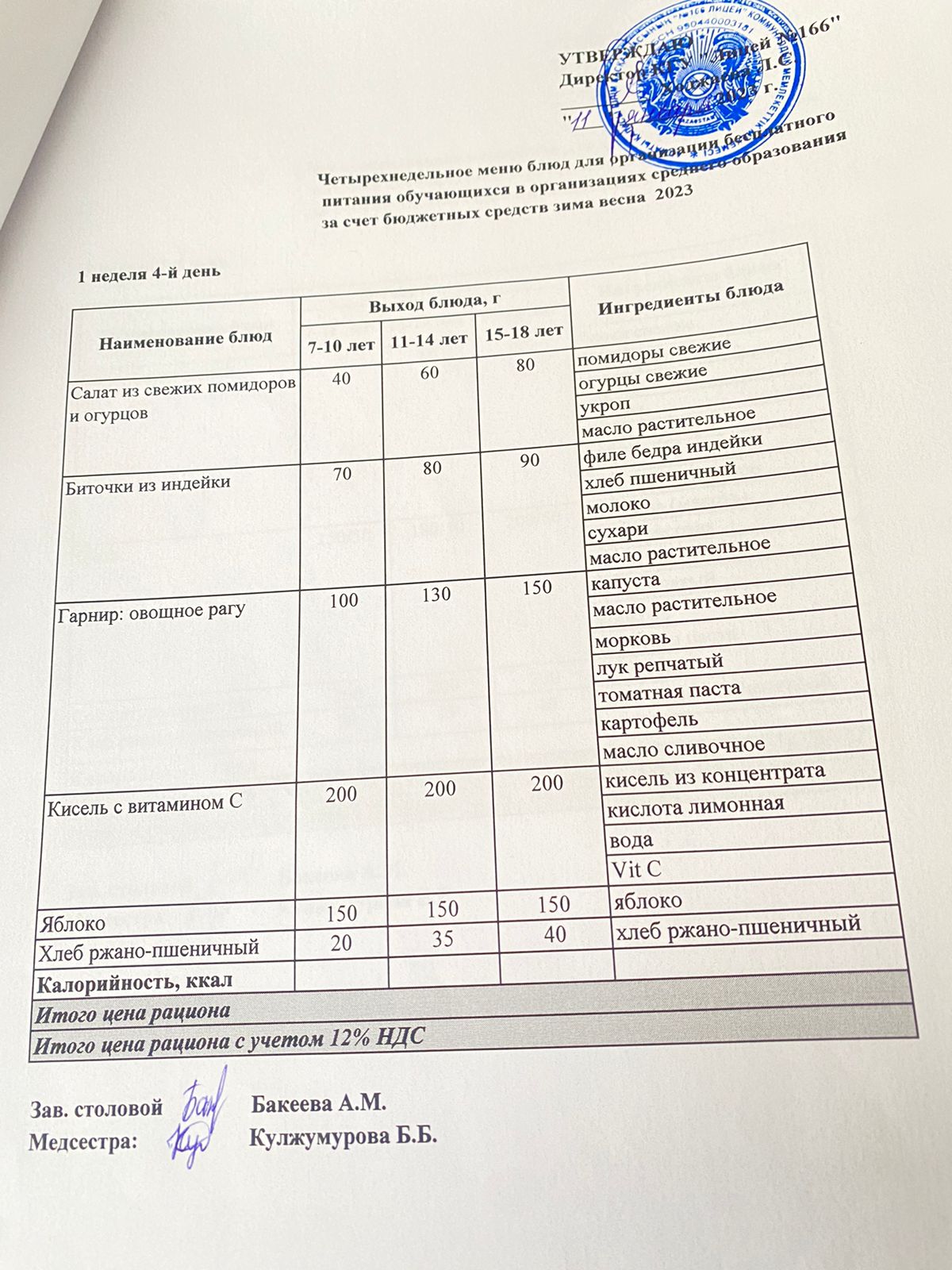 Контрольное блюдо 11.01.2024