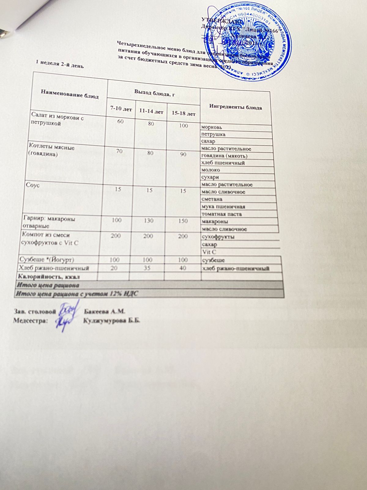 Контрольное блюдо 09.01.2024