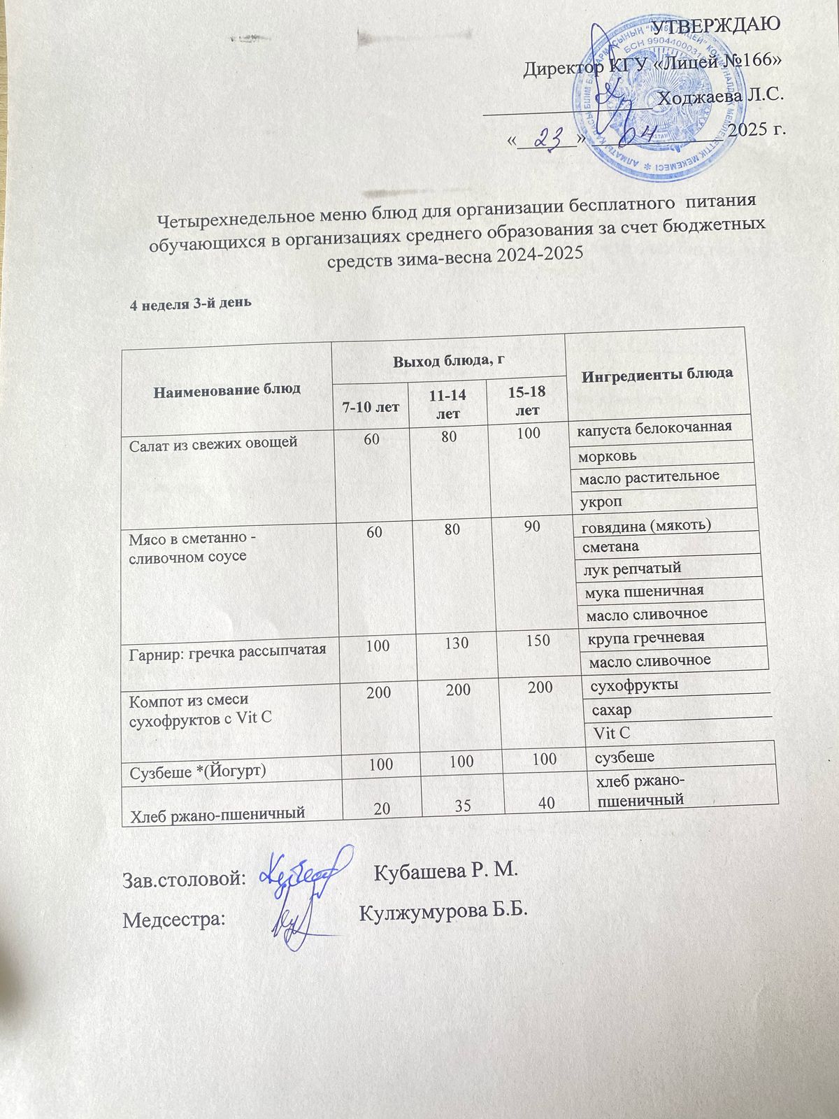 Контрольное блюдо 23.04.2025