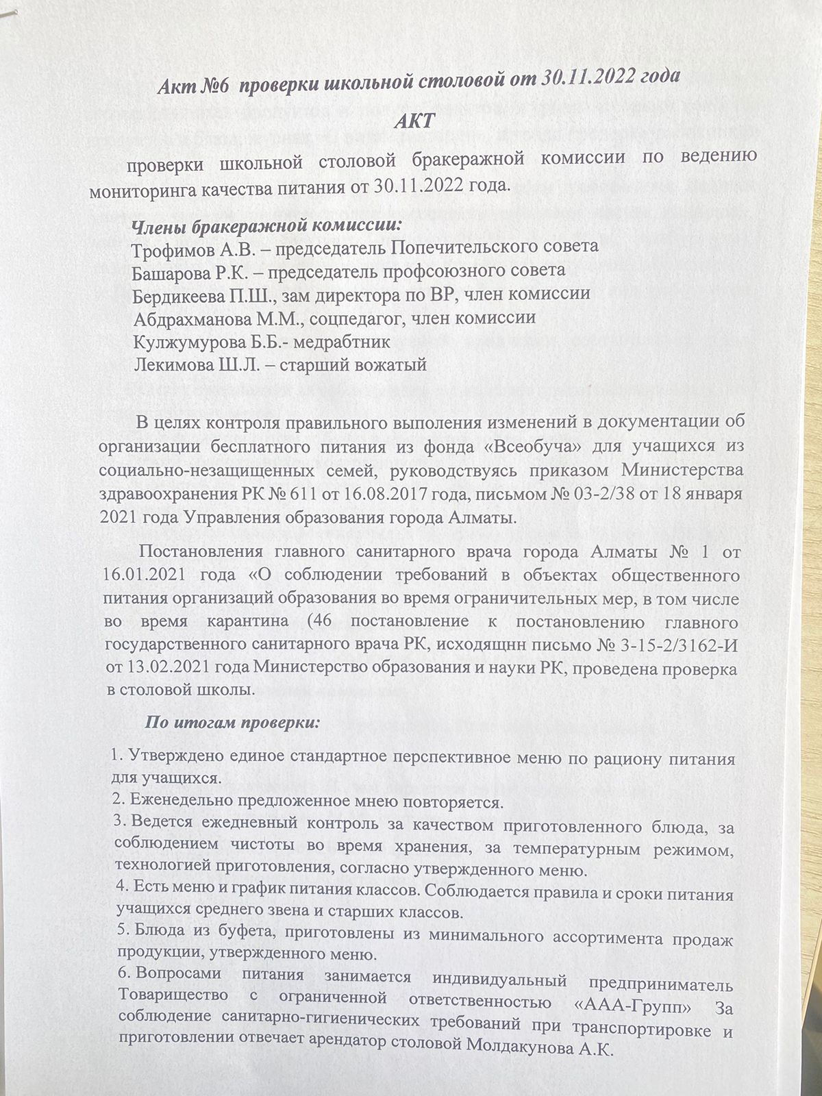 30 ноябрь 2022 0 1 2 3 4 5 Акт проверки школьной столовой №6 Осы беттің QR-коды:QR-код этой страницы: