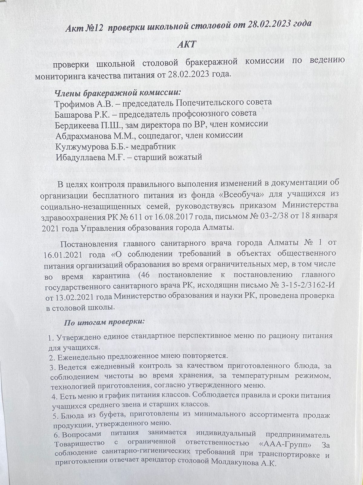 28 февраль 2023 0 1 2 3 4 5 Акт проверки школьной столовой №12 Осы беттің QR-коды:QR-код этой страницы: