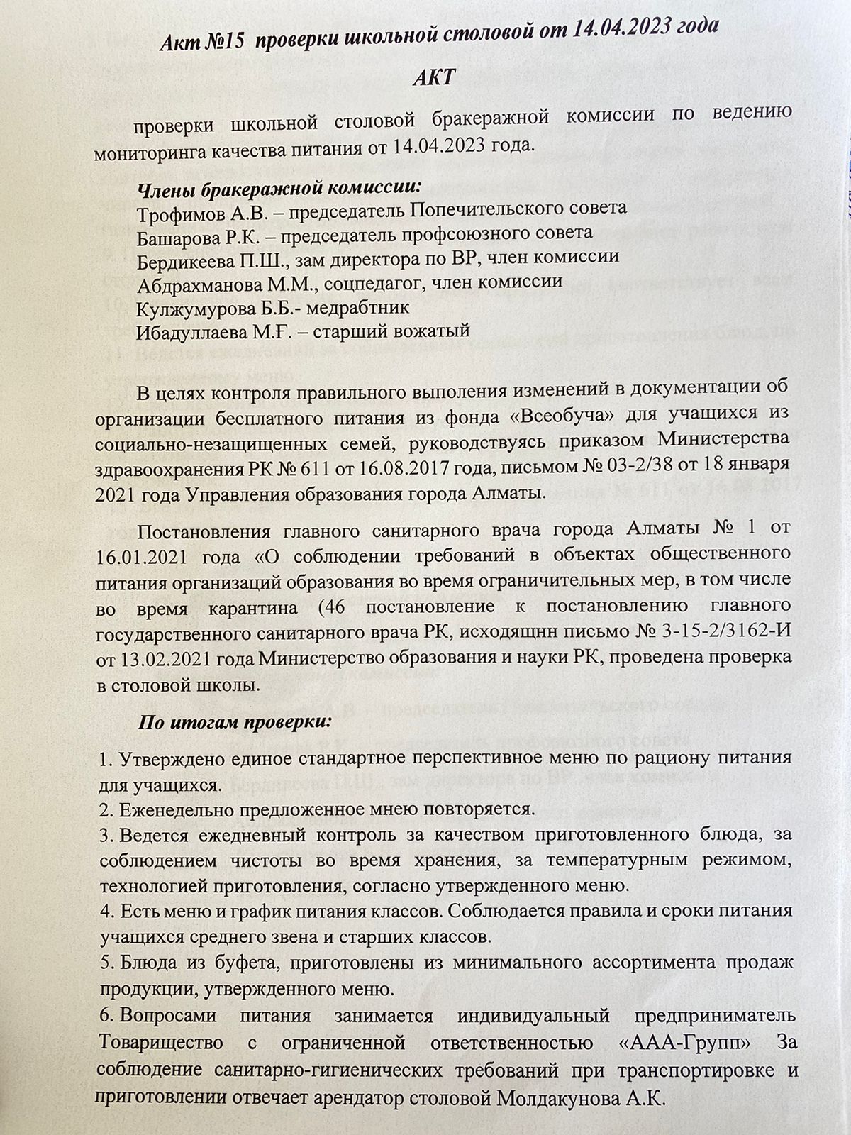 14 апрель 2023 0 1 2 3 4 5 Акт проверки школьной столовой №15 Осы беттің QR-коды:QR-код этой страницы: