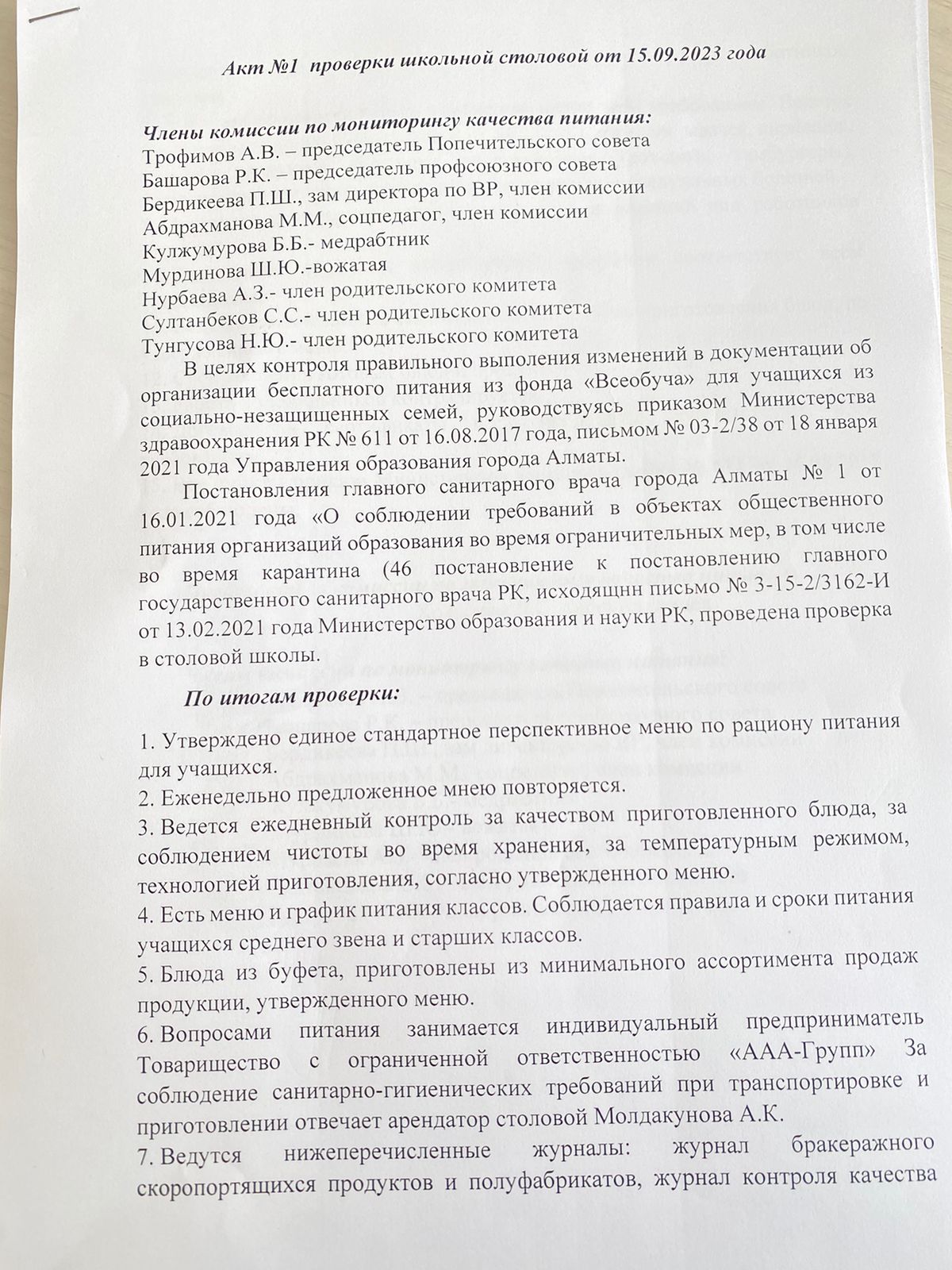 15 сентябрь 2023 0 1 2 3 4 5 Акт №1 проверки школьной столовой от 15.09.2023 Осы беттің QR-коды:QR-код этой страницы: