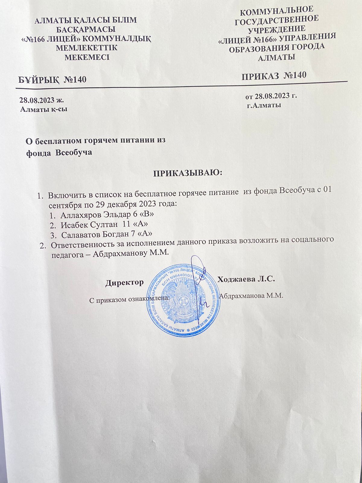28 август 2023 0 1 2 3 4 5 Приказ №140 "О бесплатном горячем питании из фонда всеобуча" Осы беттің QR-коды:QR-код этой страницы: