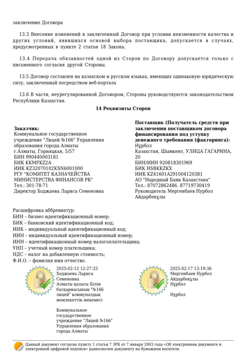 16 январь 2025 0 1 2 3 4 5 Договор о государственных закупках услуг КГУ "Лицей №166" 2024-2025 у.г. Осы беттің QR-коды:QR-код этой страницы: